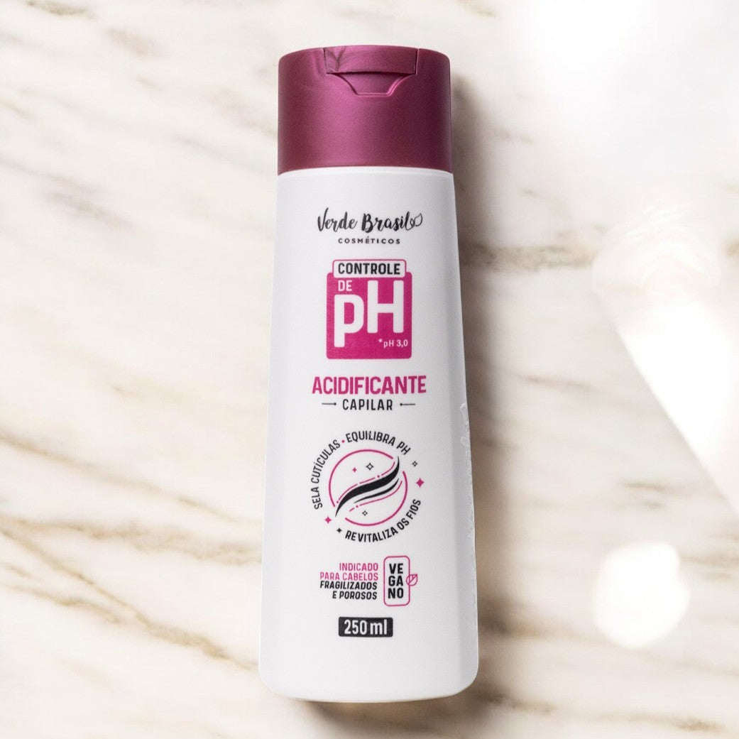 O Acidificante Capilar da Verde Brasil Cosméticos é um produto desenvolvido para equilibrar o pH dos cabelos, selando as cutículas e promovendo fios mais saudáveis e brilhantes.