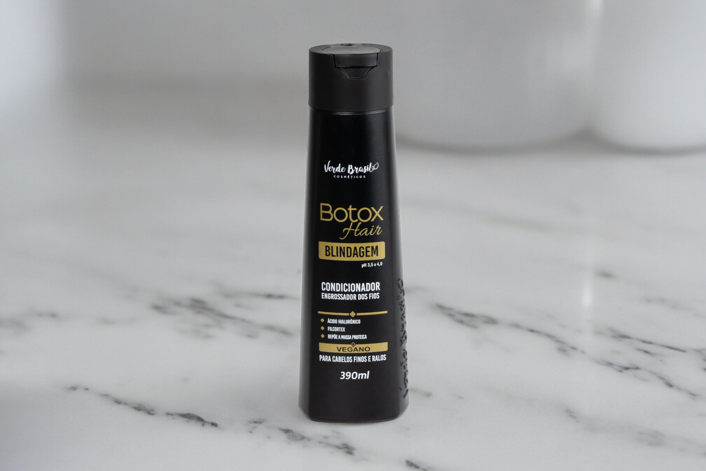 O Condicionador Botox Hair Blindagem da Verde Brasil Cosméticos é especialmente formulado para revitalizar cabelos finos, ralos, fracos e sem vida, proporcionando fios mais saudáveis e volumosos.
