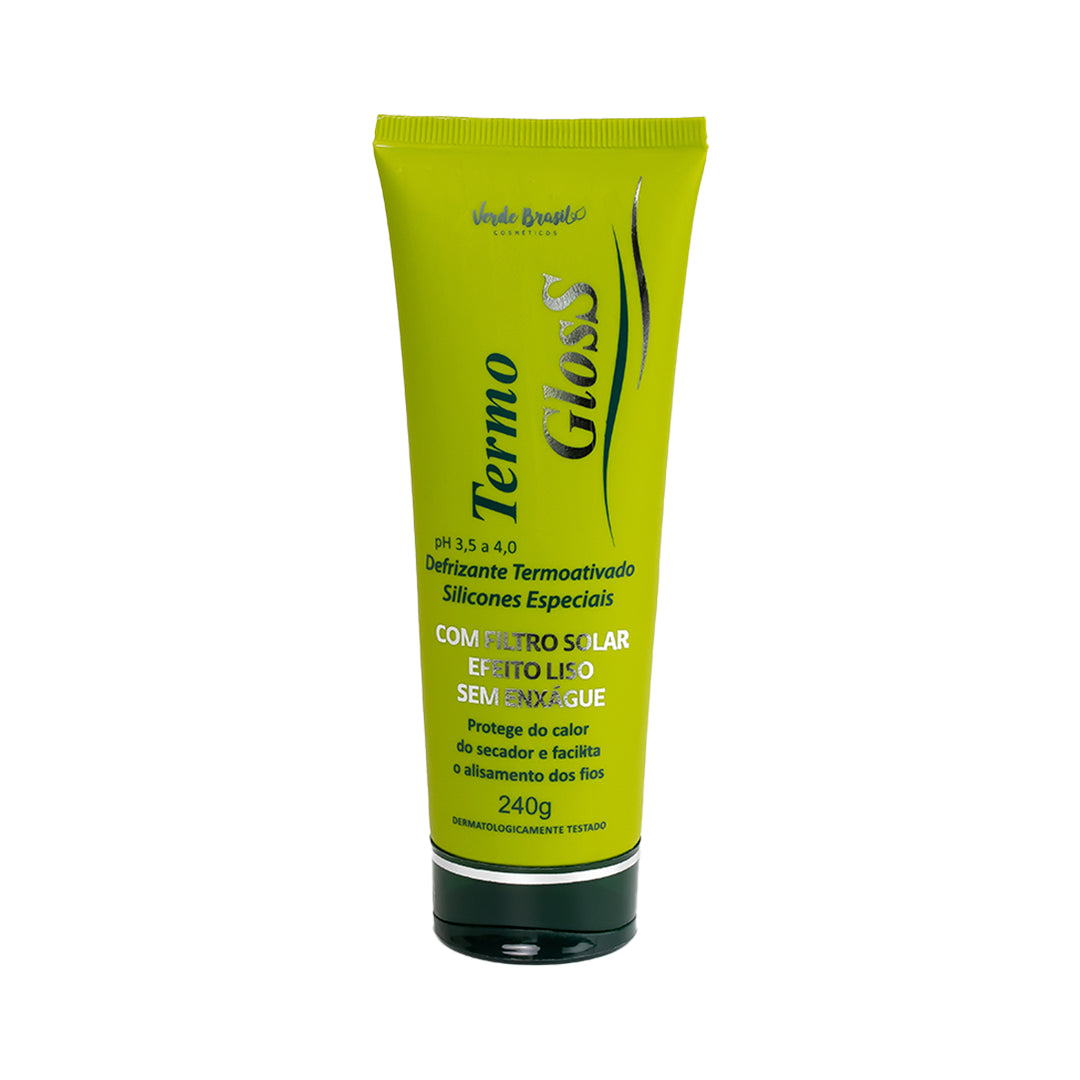 O Termogloss Defrizante Termoativado da Verde Brasil Cosméticos é um produto desenvolvido para proteger os cabelos contra danos térmicos e proporcionar um acabamento liso e brilhante.